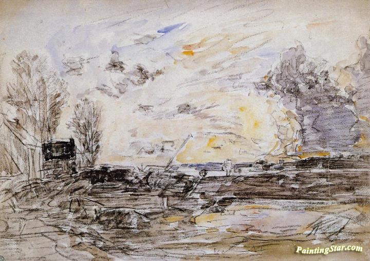 Landscape with Sunset, Art Painting by Eugène-Louis Boudin
