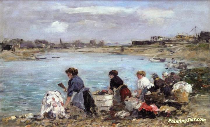 Laundresses on the Banks of the Touques, Art Painting by Eugène-Louis Boudin