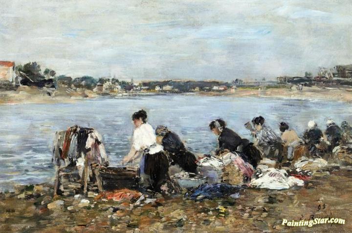 Laundresses on the Banks of the Touques, Art Painting by Eugène-Louis Boudin