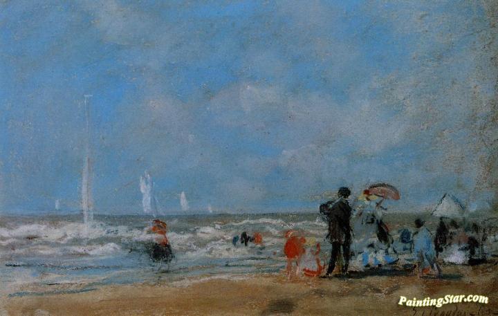 On the Beach, Art Painting by Eugène-Louis Boudin