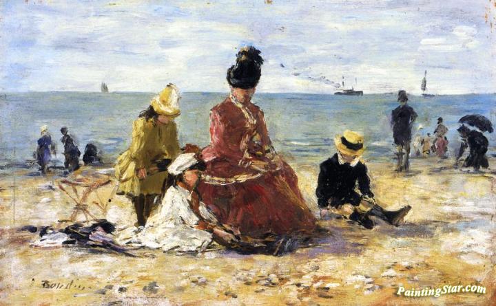 On the Beach, Art Painting by Eugène-Louis Boudin