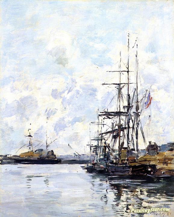 Port, Sailboats at Anchor, Art Painting by Eugène-Louis Boudin