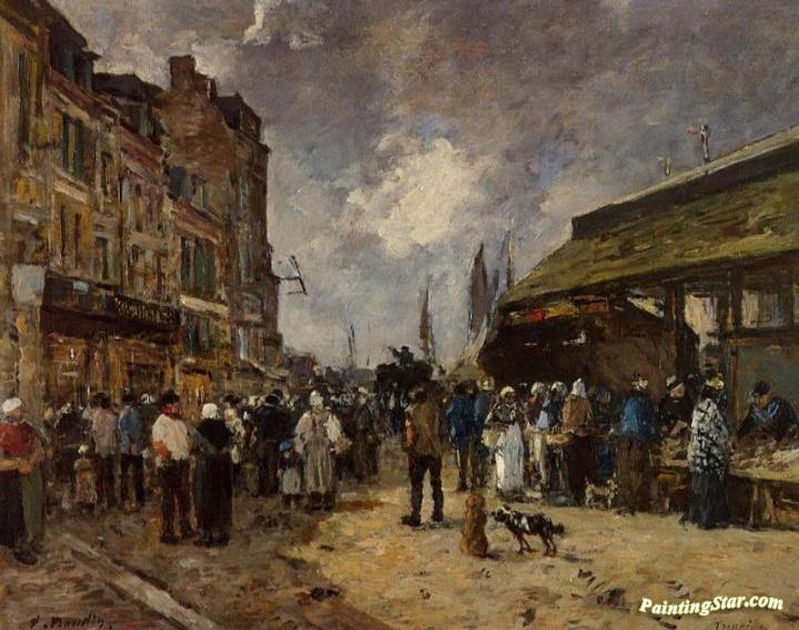 Trouville, Fish Market, Art Painting by Eugène-Louis Boudin