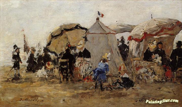 Woman and Children on the Beach at Trouville, Art Painting by Eugène-Louis Boudin