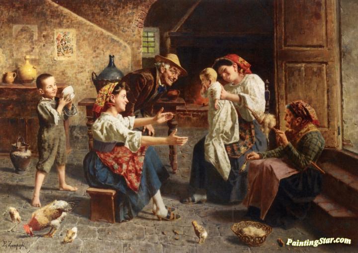 Playing with Baby, Art Painting by Eugenio Zampighi