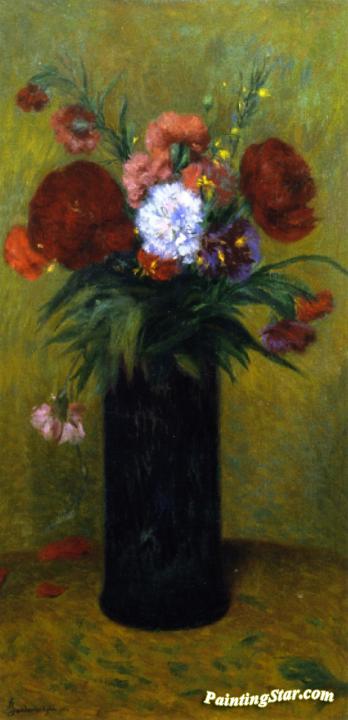 Flowers in a Blue Vase, Art Painting by Federico Zandomeneghi