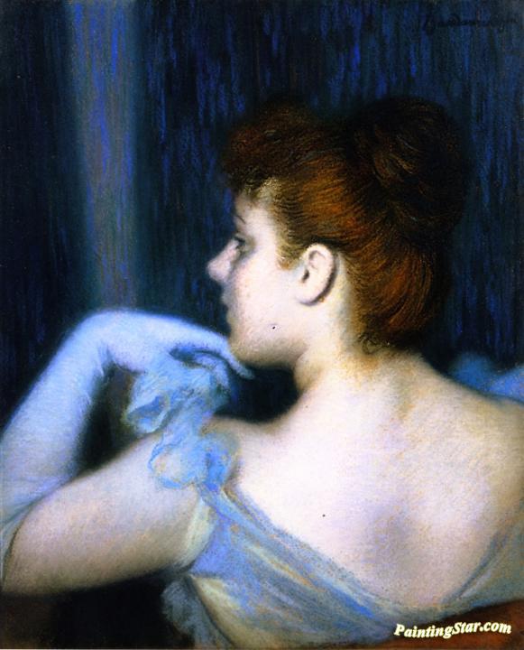 Girl in Blue from the Rear, Art Painting by Federico Zandomeneghi