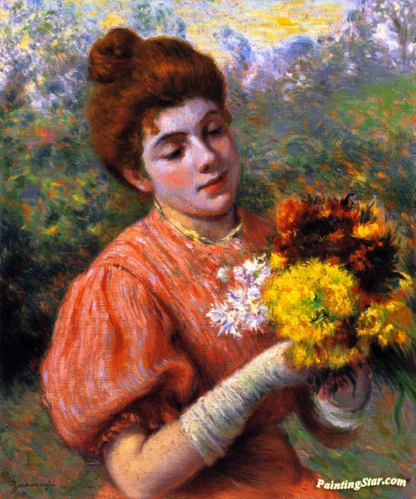 Woman with a Bouquet, Art Painting by Federico Zandomeneghi