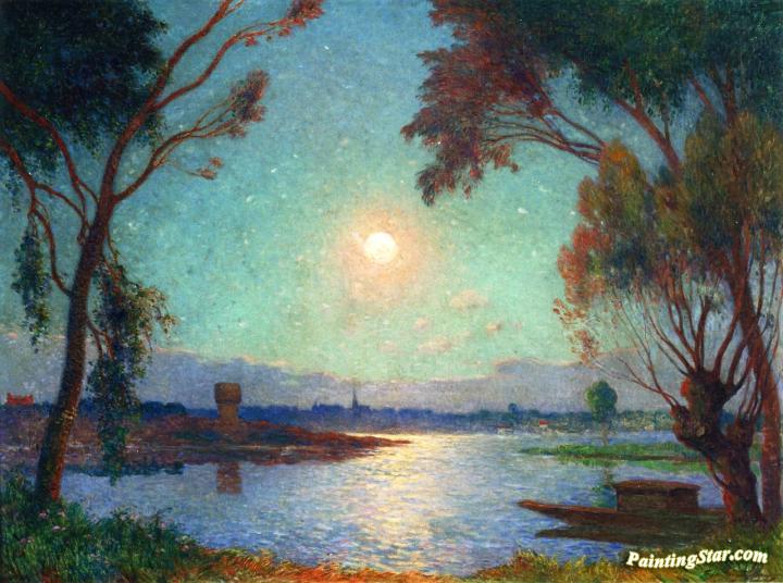 Banks of the Loire in Moonlight, Art Painting by Ferdinand du Puigaudeau