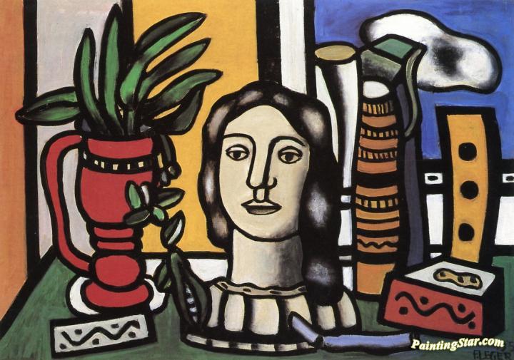 A Statuette and a Red Vase, Art Painting by Fernand Léger