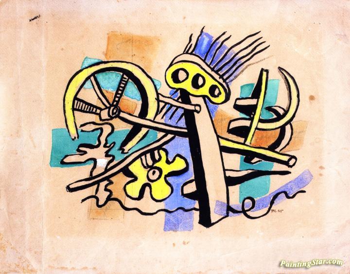 The Wheel in a Landscape, Art Painting by Fernand Léger