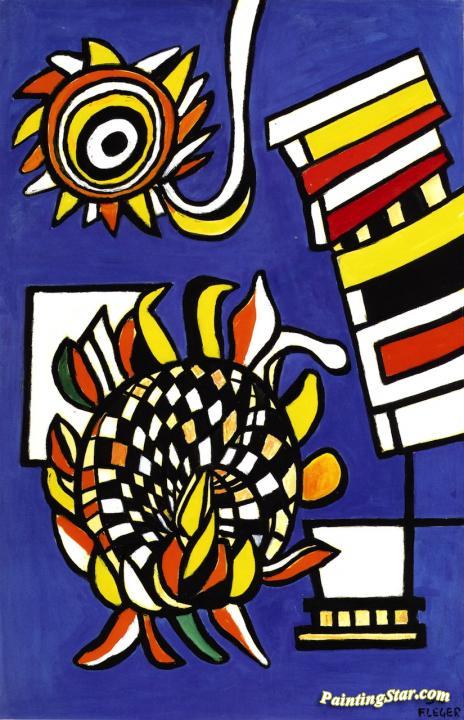 Two Sunflowers on a Blue Background, Art Painting by Fernand Léger