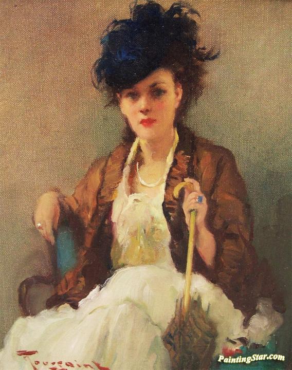 Lady with Parasol, Art Painting by Fernand Toussaint
