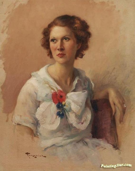 Young Woman With A Rose, Art Painting by Fernand Toussaint