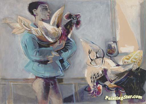 Boy with a Cock, Art Painting by Fernando Botero
