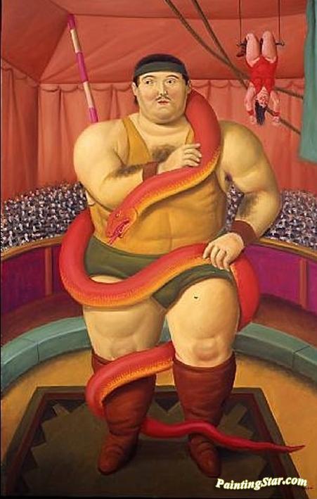 Circus Performer With Snake, Art Painting by Fernando Botero