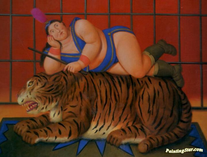 Circus Woman With Tiger, Art Painting by Fernando Botero