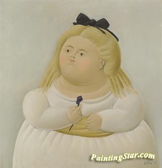 Girl with a White Dress, Art Painting by Fernando Botero