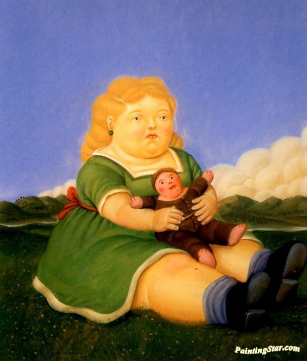 Girl with Puppet, Art Painting by Fernando Botero