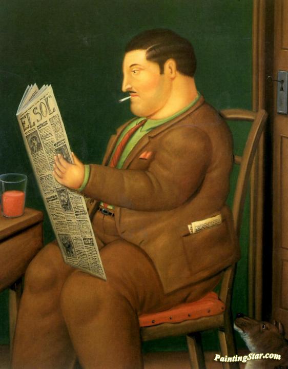 Man Reading A Paper, Art Painting by Fernando Botero
