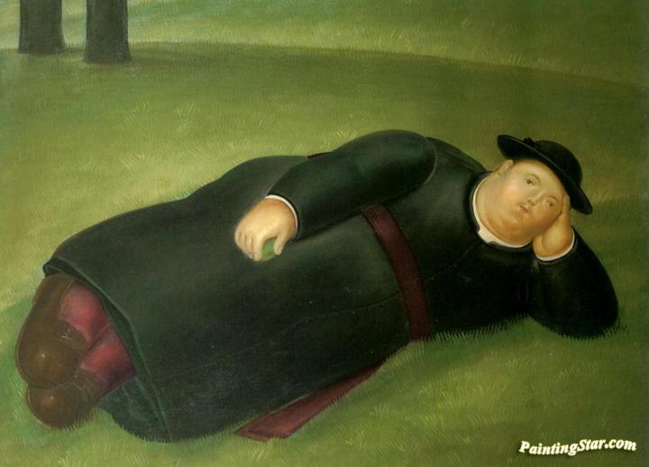 Reclining Priest, Art Painting by Fernando Botero