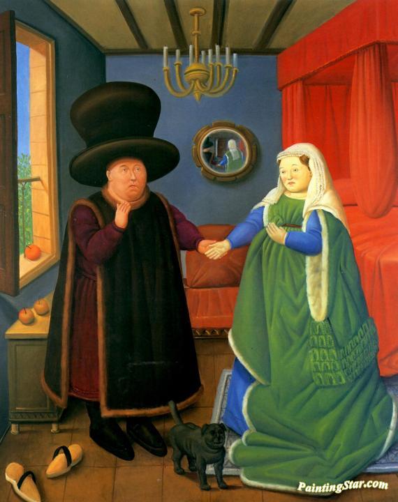 The Arnolfinis after Van Eyck, Art Painting by Fernando Botero