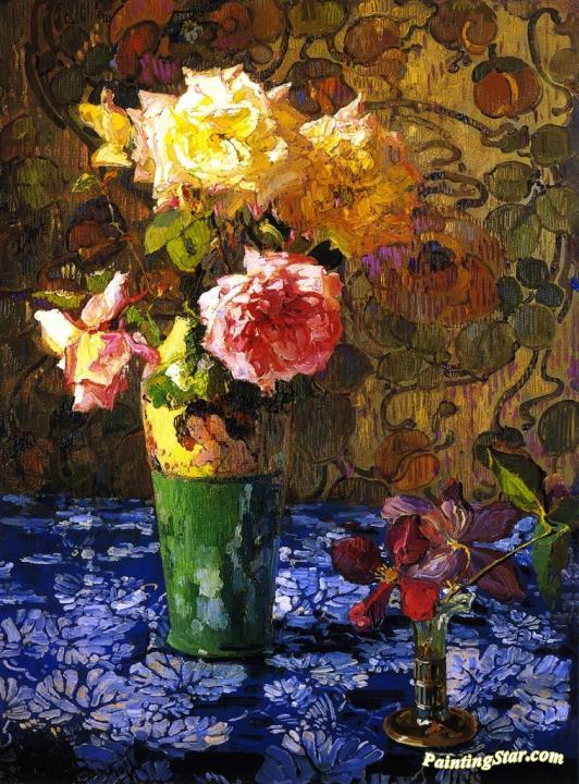 Roses In A Atall Glass, Art Painting by Franz Bischoff