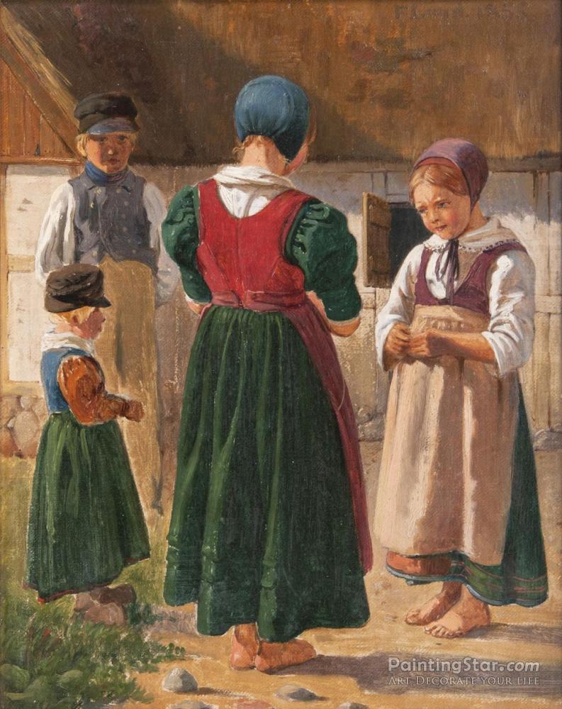 Children In Traditional Costume, 1861, Art Painting by Frederik Christian Lund