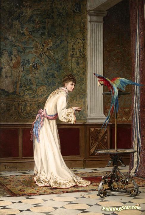 Lady with a Parrot, Art Painting by Frederik Henrdik Kaemmerer
