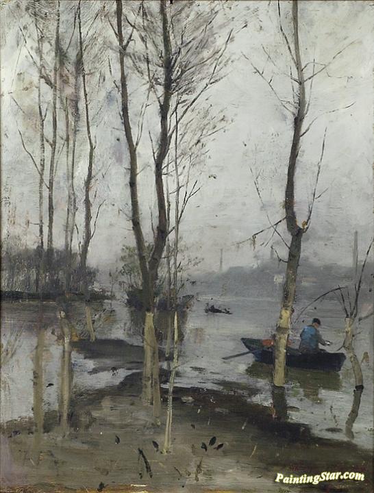 River Scene with a Fisherman, Art Painting by Fritz Thaulow