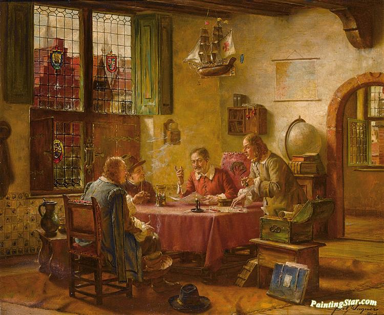 Figures In An Interior, Art Painting by Fritz Wagner