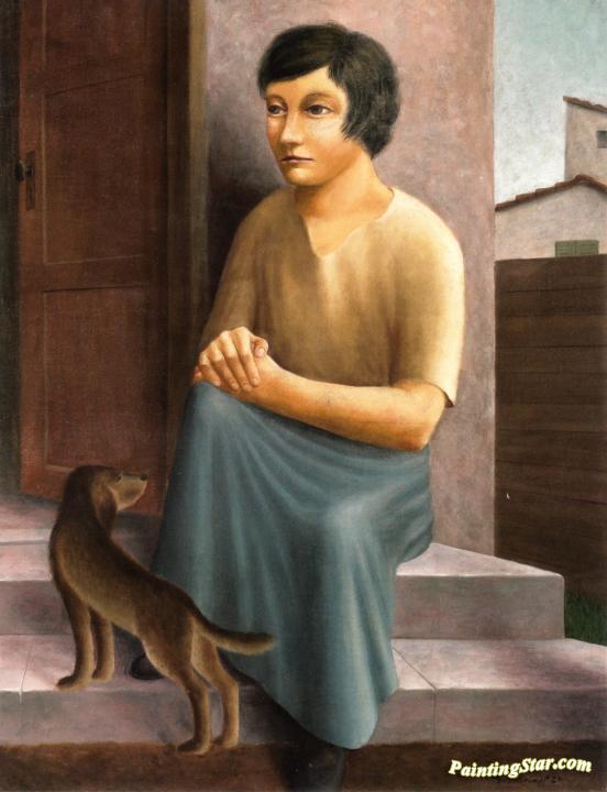 Girl With Dog, Art Painting by Georg Schrimpf