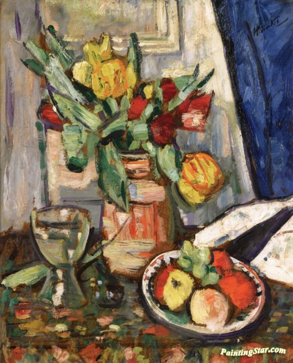 Still LIfe with Tulips and Fruit, Art Painting by George Leslie Hunter
