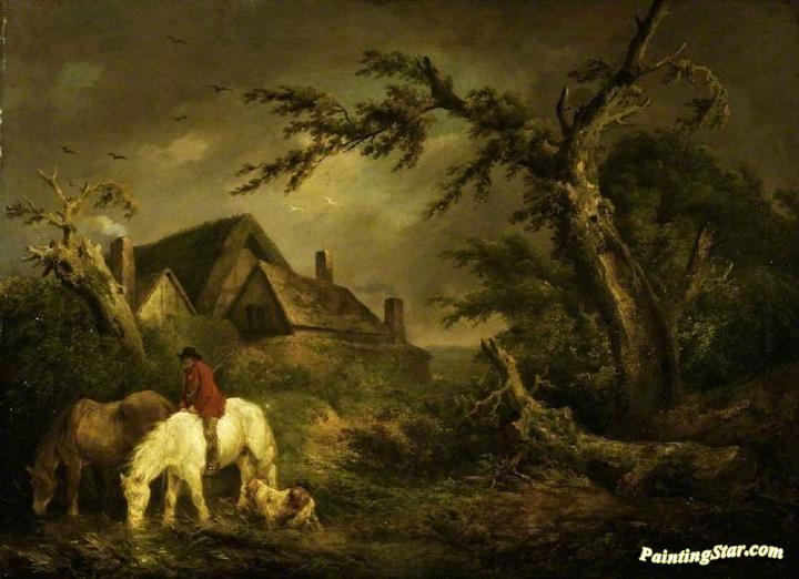 Watering Horses, Art Painting by George Morland