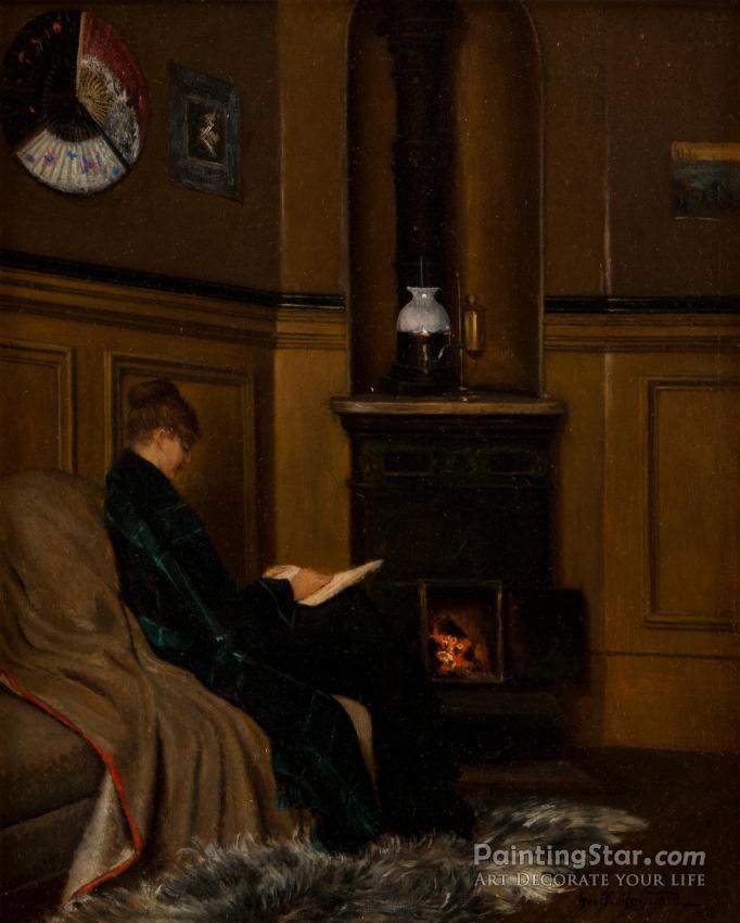 Reading By The Fire, Art Painting by George Willoughby Maynard