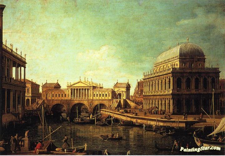 Basilica di Vecenza and the Ponte de Rialto, Art Painting by Giovanni Antonio Canal