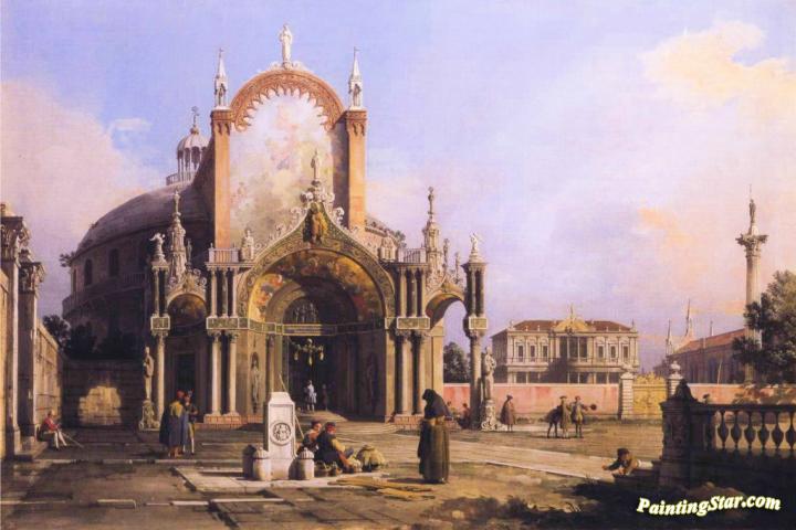 Capriccio of a Round Church with an Elaborate Gothic Portico in a Piazza, a Palladian Piazza and a Gothic Church Beyond, Art Painting by Giovanni Antonio Canal