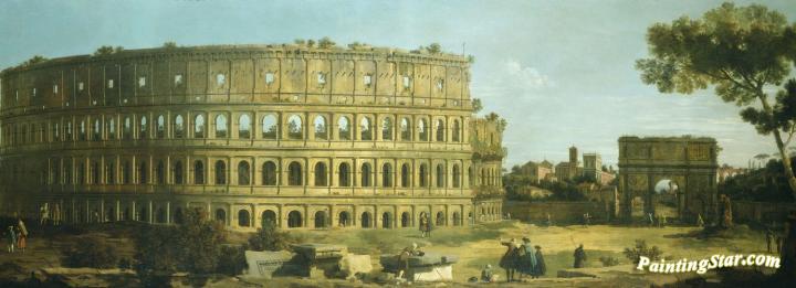 Rome: View of the Colosseum and the Arch of Constantine, Art Painting by Giovanni Antonio Canal