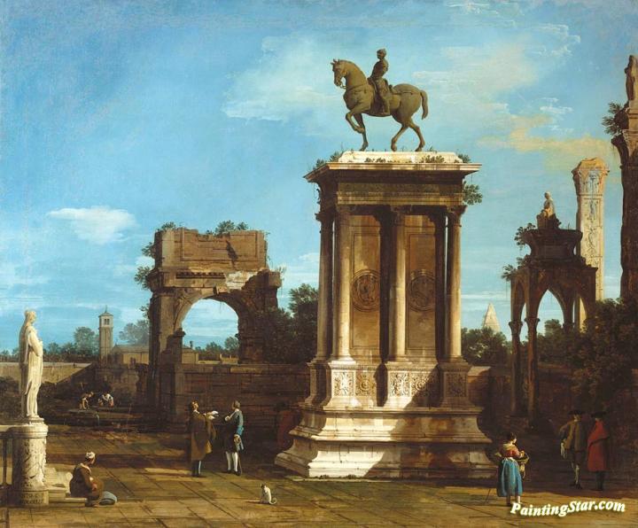 The Colleoni Monument in a Caprice Setting, Art Painting by Giovanni Antonio Canal