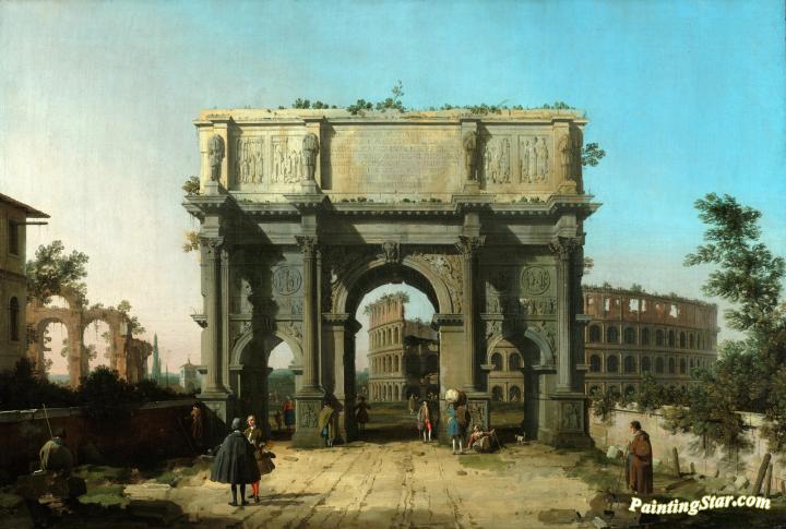 View the Arch of Constantine with the Coliseum, Art Painting by Giovanni Antonio Canal