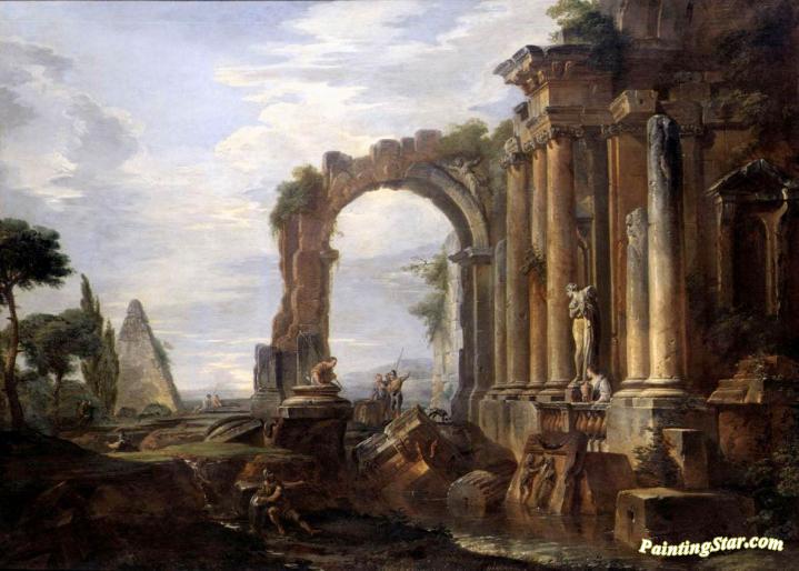 Capriccio Of Classical Ruins, Art Painting by Giovanni Paolo Pannini
