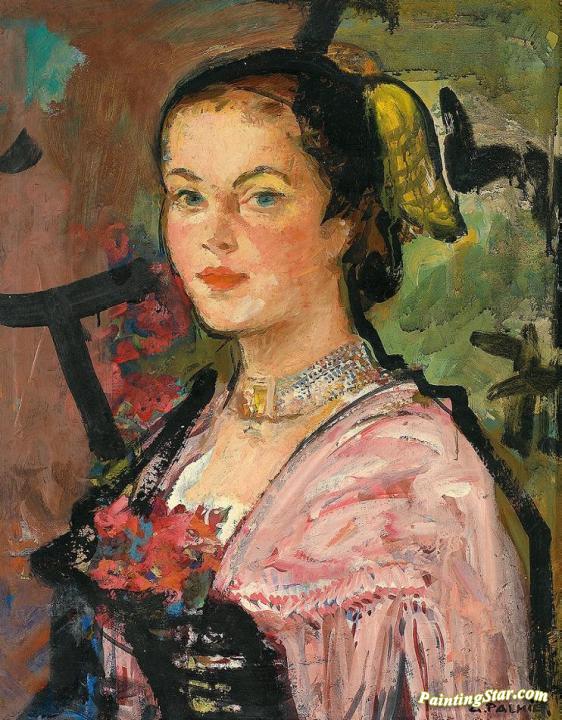 Portrait of a Young Woman in Traditional Costume, Art Painting by Gisbert Palmie