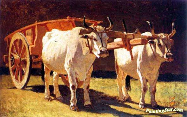 Oxen And Cart, Art Painting by Giuseppe Abbati