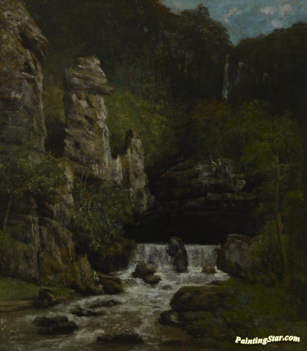 Landscape with Waterfall, Art Painting by Gustave Courbet