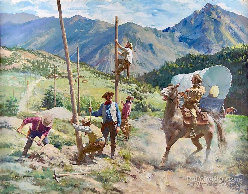 Talking Wires Take Over From The Pony Express, 1966, Art Painting by Harry Anderson