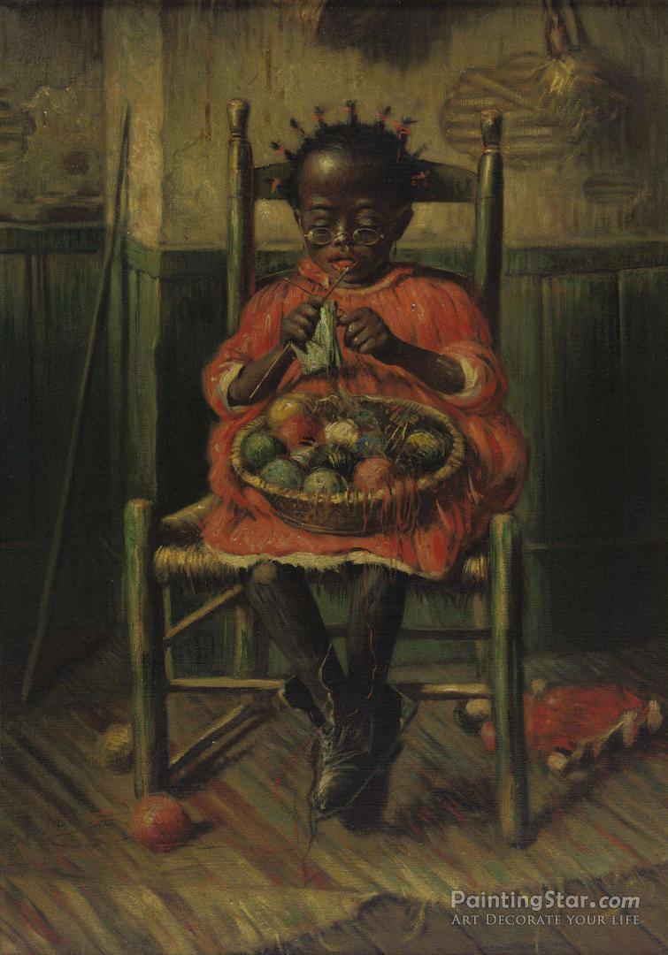 The Little Knitter, Art Painting by Harry Roseland
