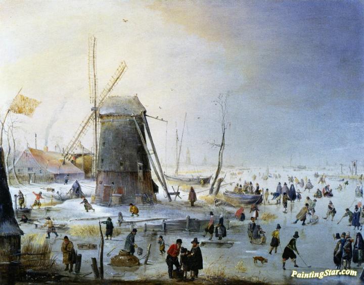 Winter Landscape with a Windmill, Art Painting by Hendrick Avercamp