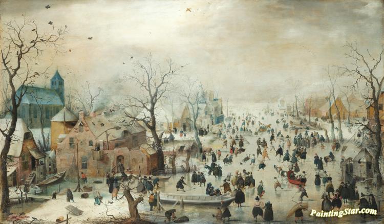 Winter Landscape With Skaters, Art Painting by Hendrick Avercamp