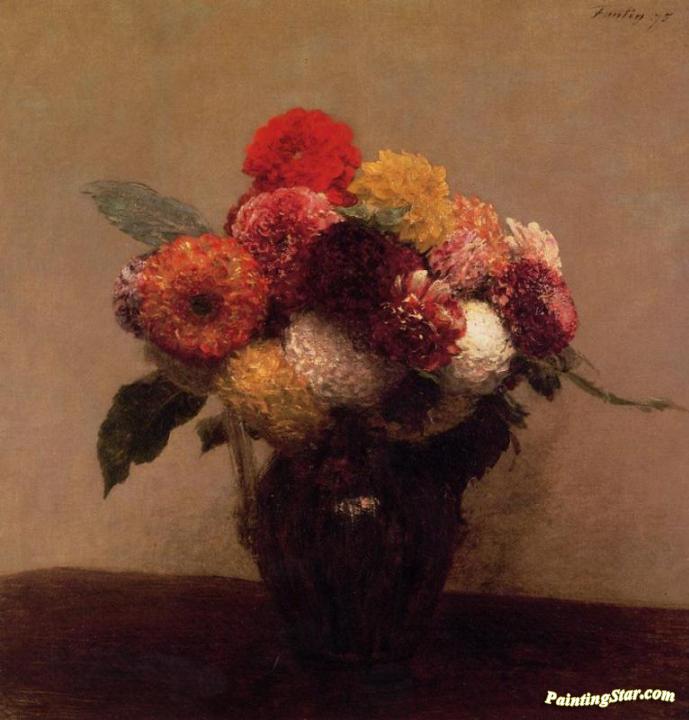 Dahlias, Queens Daisies, Roses and Corn Flowers, Art Painting by Henri Fantin-Latour
