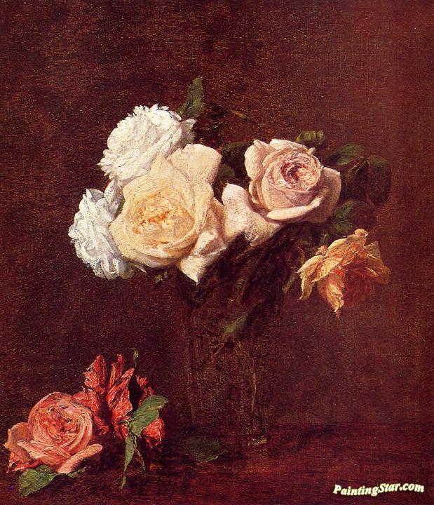Roses in a Vase, Art Painting by Henri Fantin-Latour